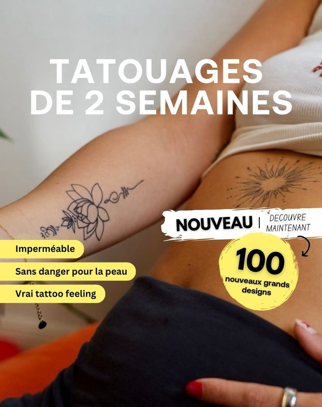Contrairement aux tatouages traditionnels, notre compagnie t'offre la possibilité d’essayer un tatouage qui te plait pour une durée de seulement 2 semaines. Ensemble, nous changeons l’image du tatouage traditionnel.