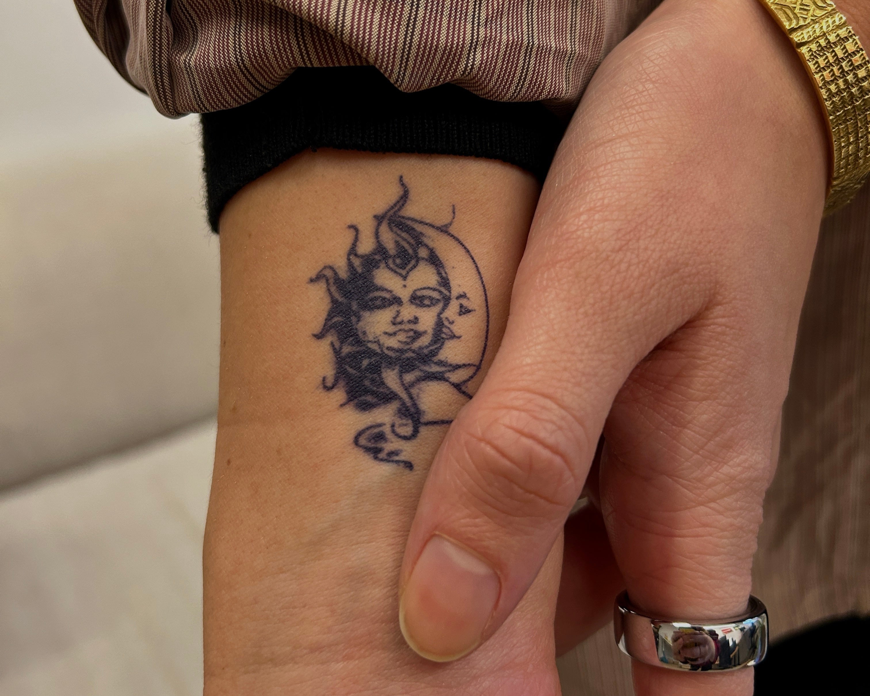 Dans certaines circonstances, il est également possible de télécharger une photo. Il est important que la photo soit nette, que les lignes soient claires et que l'arrière-plan du dessin soit clair et contraste avec le dessin. Voir « Guide de référence rapide pour les tatouages personnalisés » sur la page produit de la taille de ton tatouage.