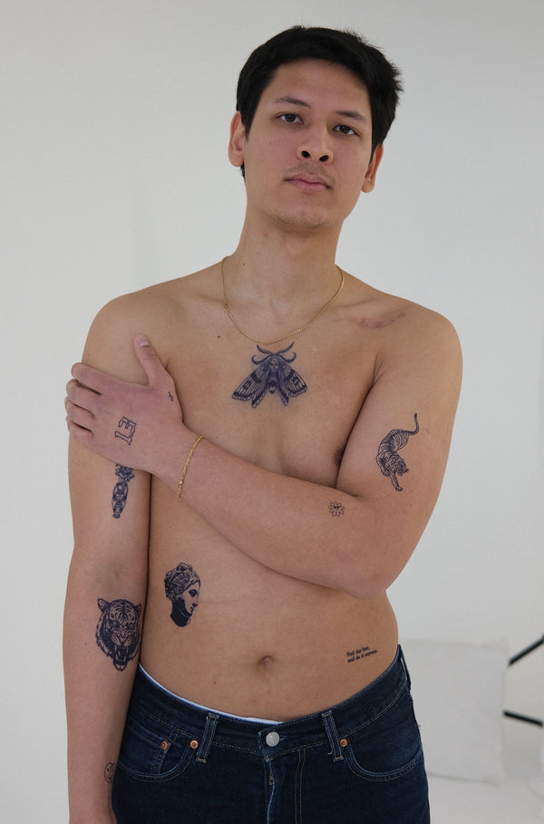 Pour ton tatouage révolutionnaire de 2 semaines d'Inkster, tout ce dont tu as besoin est le tatouage, qui sera livré à ta porte. Les instructions sur la façon d'appliquer le tatouage se trouvent sur l'emballage du tatouage. Ne t'inquiète pas, c'est très simple, rien ne peut mal tourner !