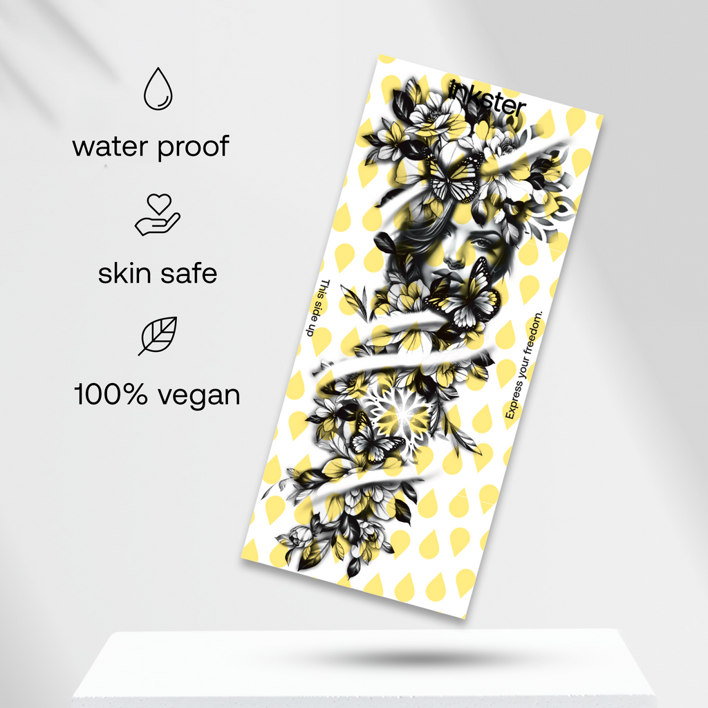 Notre encre naturelle Inkster pénètre dans la première couche de peau et réagit avec les composés naturels présents dans votre peau et dans l'air, la rendant noire ou bleue.