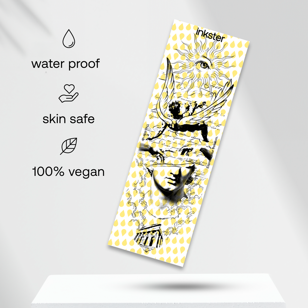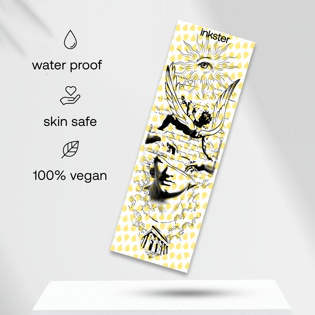 Notre encre naturelle Inkster pénètre dans la première couche de peau et réagit avec les composés naturels présents dans votre peau et dans l'air, la rendant noire ou bleue.