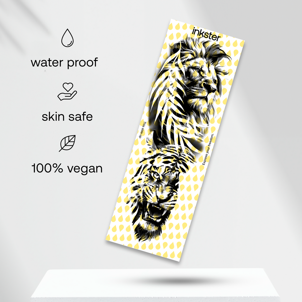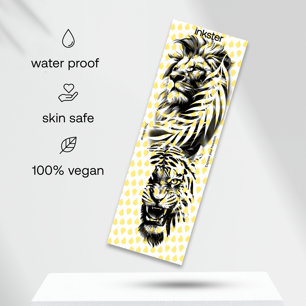 Nos nouveaux tatouages en manchette ne sont pas seulement les plus grands et les plus détaillés au monde, ils ont également été développés en collaboration avec un véritable tatoueur : parfaitement adaptés au bras, avec des motifs forts et symboliques – comme de véritables tatouages en manchette.