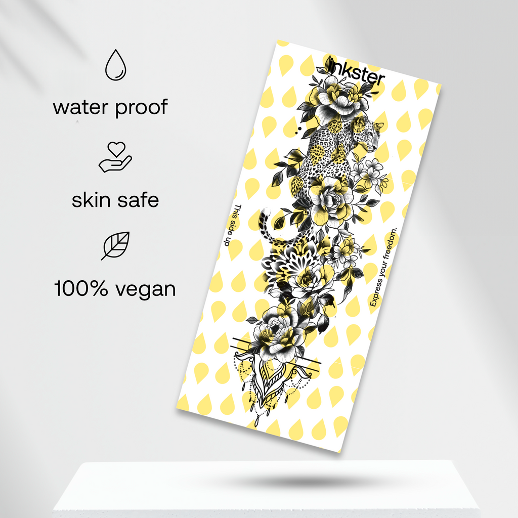 Pour ton tatouage révolutionnaire de 2 semaines d'Inkster, tout ce dont tu as besoin est le tatouage, qui sera livré à ta porte. Les instructions sur la façon d'appliquer le tatouage se trouvent sur l'emballage du tatouage. Ne t'inquiète pas, c'est très simple, rien ne peut mal tourner !