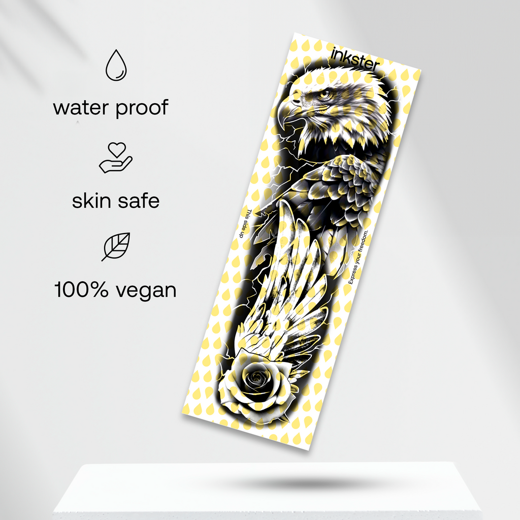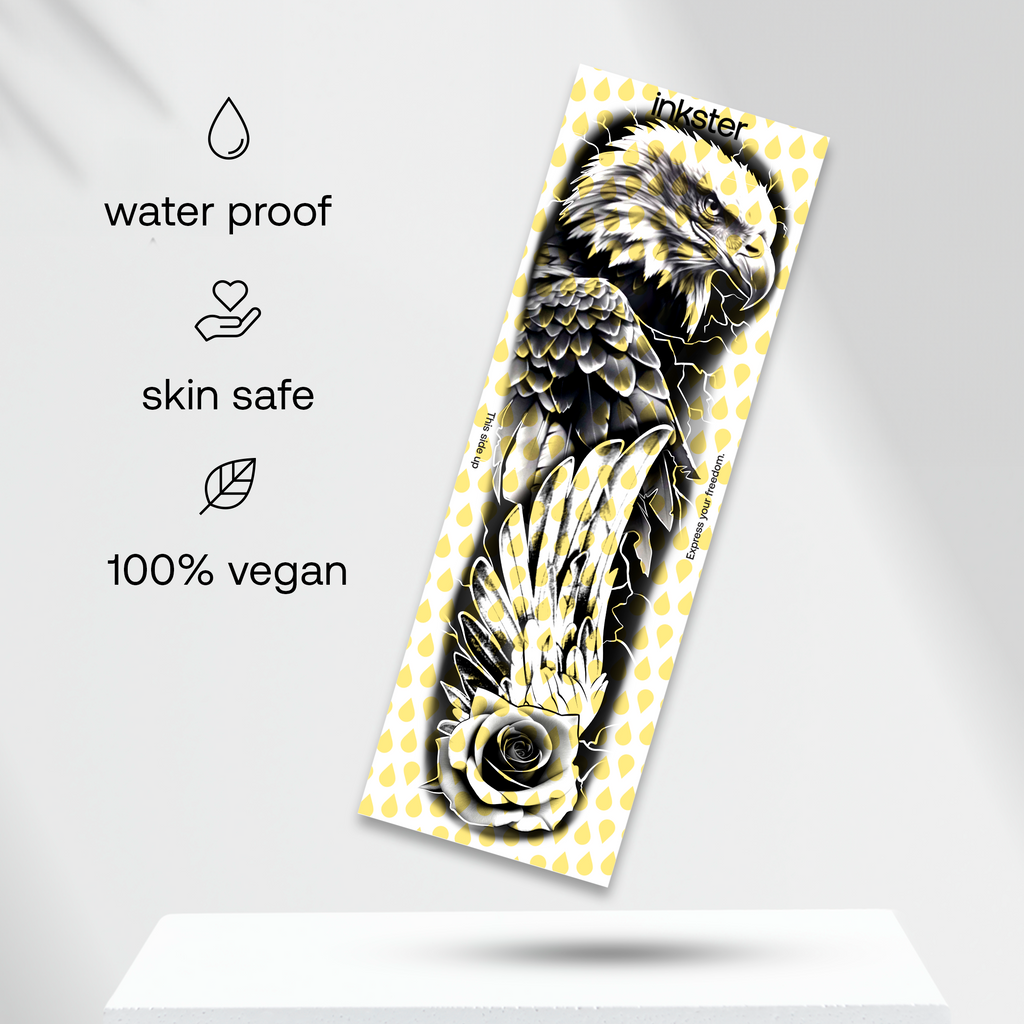 Pour ton tatouage révolutionnaire de 2 semaines d'Inkster, tout ce dont tu as besoin est le tatouage, qui sera livré à ta porte. Les instructions sur la façon d'appliquer le tatouage se trouvent sur l'emballage du tatouage. Ne t'inquiète pas, c'est très simple, rien ne peut mal tourner !