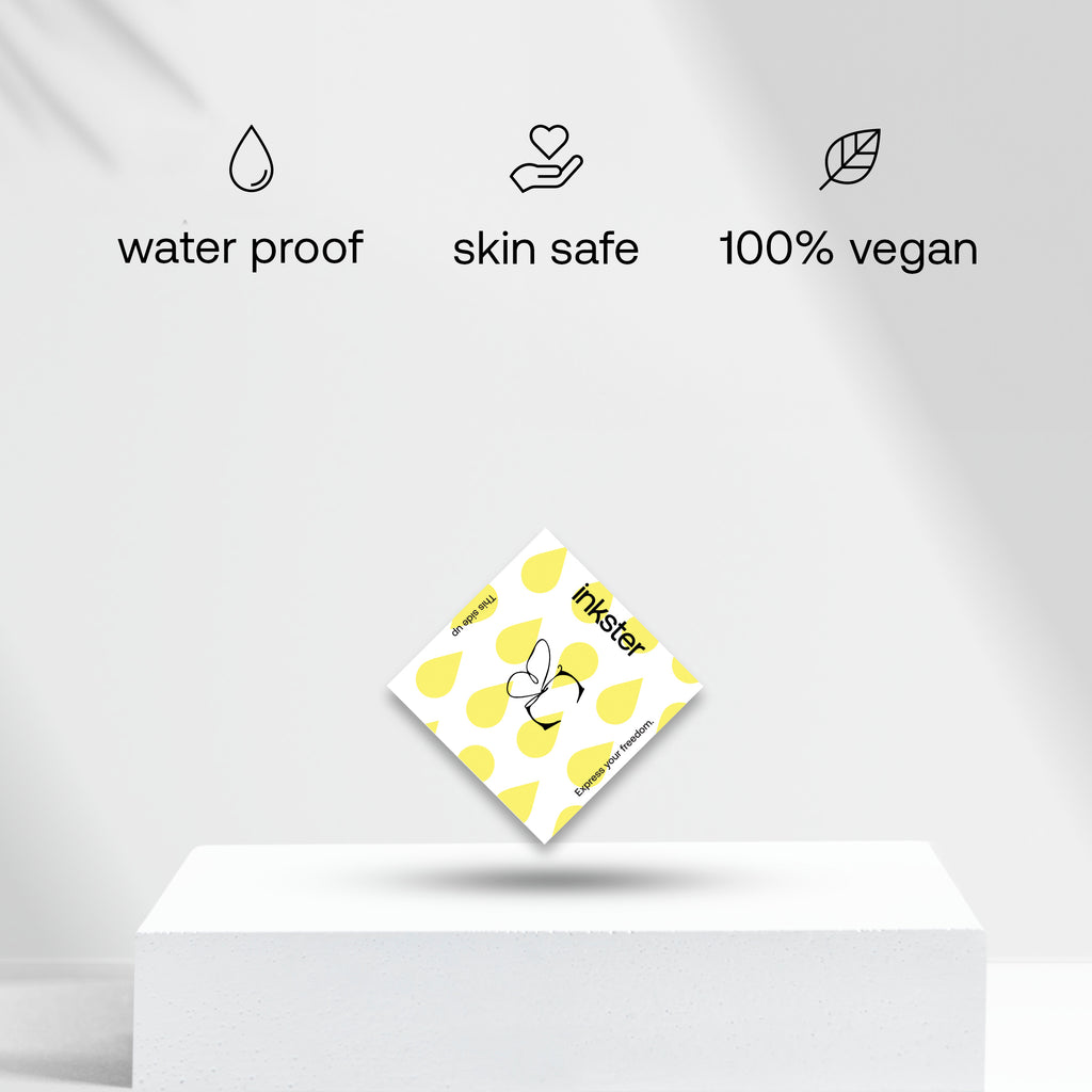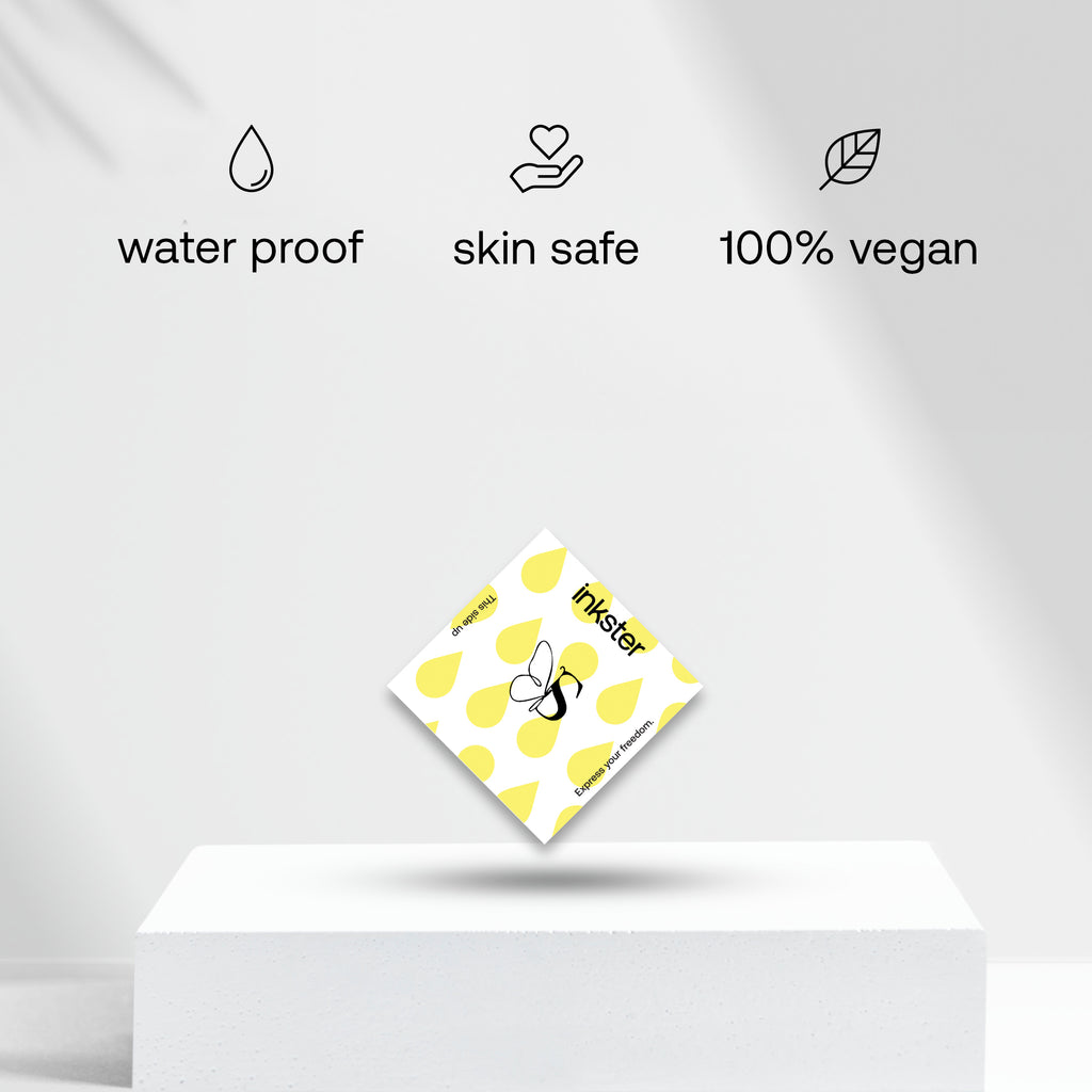 Unsere natürliche Inkster Tinte zieht in die erste Hautschicht ein und reagiert mit natürlichen Verbindungen in der Haut und der Luft, wodurch sie sich schwarz/blau färbt.