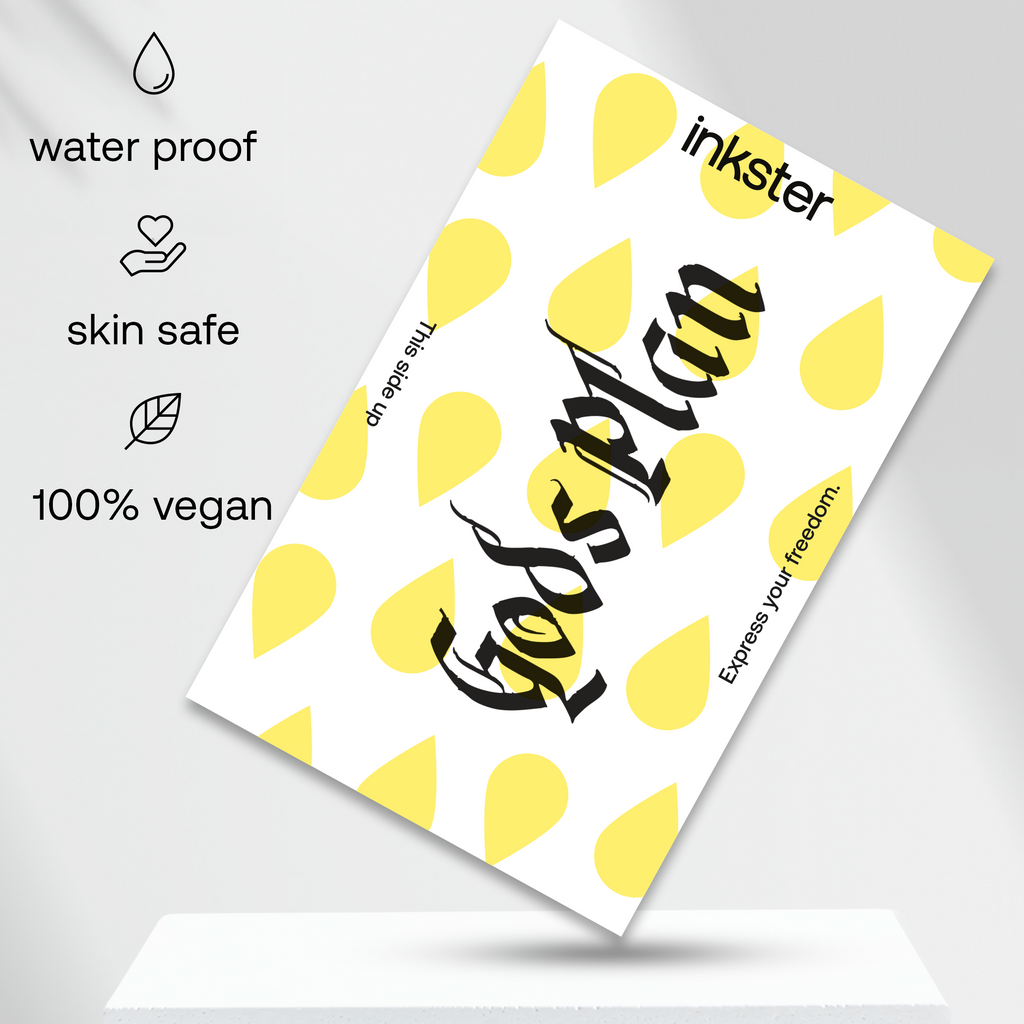 Unsere natürliche Inkster Tinte zieht in die erste Hautschicht ein und reagiert mit natürlichen Verbindungen in der Haut und der Luft, wodurch sie sich schwarz/blau färbt.
